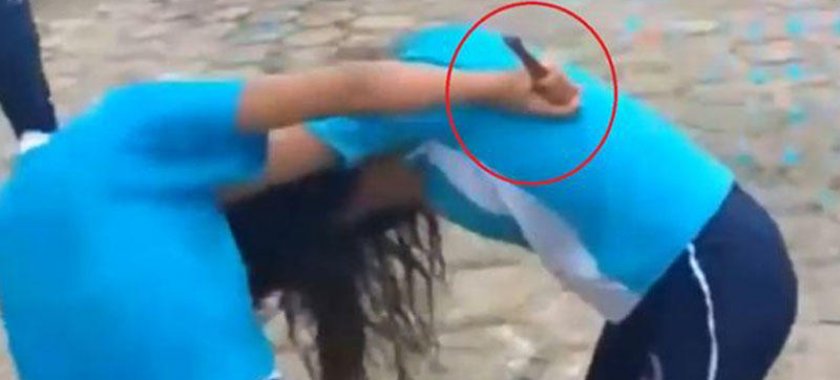 Qızlardan biri digərinə bıçaq çıxardıb.