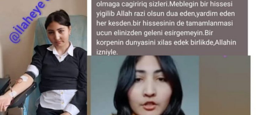7NEWS.az redaksiyasına müraciət edən Səmədova İlahə Rakif qızı hər kəsdən kömək istəyir: "16 yasim var, 3 yaşımdan xəstəliyim bilinib, talasemiya xestesiyem. Bu xestelikden tam azad olmaq üçün sümük iliyi köçürülməlidir. Donorum tapilib Turkiyədən, əməliyyat Türkiyədə Antalyada Medikal Parkda olunacaq. 141 min manat pul teleb olunur. 70.500 manatını "Nərgiz" Fondu ödəyir. 70.500 manatini ailəm verməlidir. Ailəmin buna imkanı yoxdu. Men sağlam yasamaq istəyirem. Artıq iynə dərman, qan köçürtmek istəmirəm. 20 yaşdan sonra əməliyyat mümkünsüz olacaq. Bu mənim son şansımdır. Xahiş edirəm, yalvarıram pula görə son şansımı itirmək istəmirəm. Mərhəmətli, yardımsevər xalqımızdan kömek, dəstək istəyirəm. Məni yaşadın!"