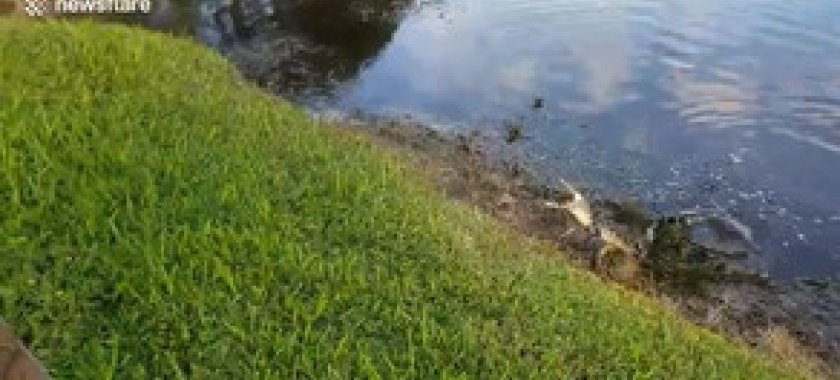 Ov zamanı balıqçının qarmağına alliqator balası düşüb. Balıqçı kiçik timsahı sahilə çıxardıb, bir-iki şəkil çəkdirdikdən sonra isə yenidən suya buraxıb./report