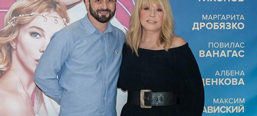 68 yaşlı ifaçı teatra bu dəfə əri Maqsim Qalkinlə deyil, yaxın dostu, stilist Alişer ilə qatılıb.