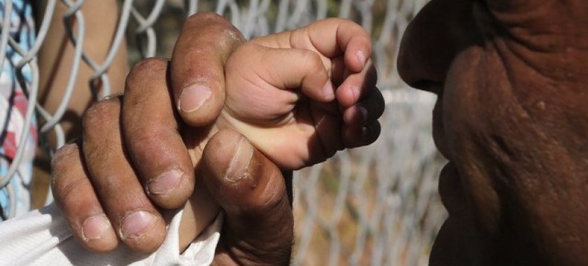Suriyada inşaatların birində fəhlə kimi çalışdığını deyən kişi düşərgədə oğlunu dəmir barmaqların arxasından öpməyə çalışarkən fotoqraf tərəfindən lentə alınıb. Balaca oğlanın atasına toxunmaq üçün kiçik əlini barmaqlıqların arasına salması görənləri daha da duyğulandırıb./azxeber.com