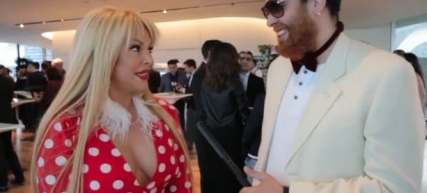 Müsahibə zamanı xalq artistinin sinə dekoltesi libası diqqət çəkib.