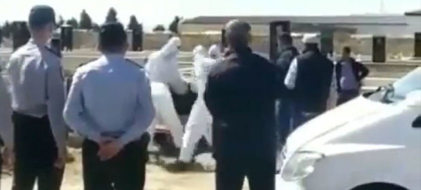 Videoda xüsusi geyimli şəxslərin cənazəni qəbirə qoyması, prosesə polislər tərəfindən nəzarət olunması görünür.