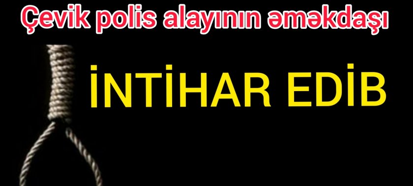İcmal.az mediapost-a istinadən xəbər verir ki, hadisə Nizami rayonunda qeydə alınıb. Rayon sakini, 1989-cü il təvəllüdlü Əhmədov Mirzə Rafiq oğlu özünü yaşadığı evdə asıb. Onun hansı səbəbdən intihar etdiyi məlum deyil.