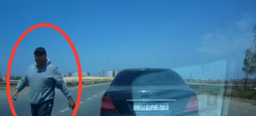 Qarşıdakı sürücünün yol vermədiyini görən "Mercedes"in sürücüsü səs siqnalı verərək onun qarşısını kəsib. O, daha sonra avtomobildən düşüb sürücünün yanına gələrək nalayiq söyüşlər söyməyə başlayıb. Üstəlik sürücünün üzündən vuraraq hadisə yerindən qaçmağa başlayıb. Görüntünü qeydə alan sürücü bu barədə DİN-in 102 qaynar xəttinə şikayət edib.