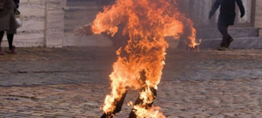 Bu gün Bakıda bankın qarşısında özünü yandıran şəxsin fotoları yayılıb.