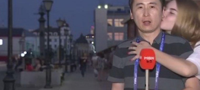 Rus qız Dünya Çempionatı üçün Rusiyadan reportaj hazırlayan daha bir müxbiri canlı yayım zamanı öpüb.