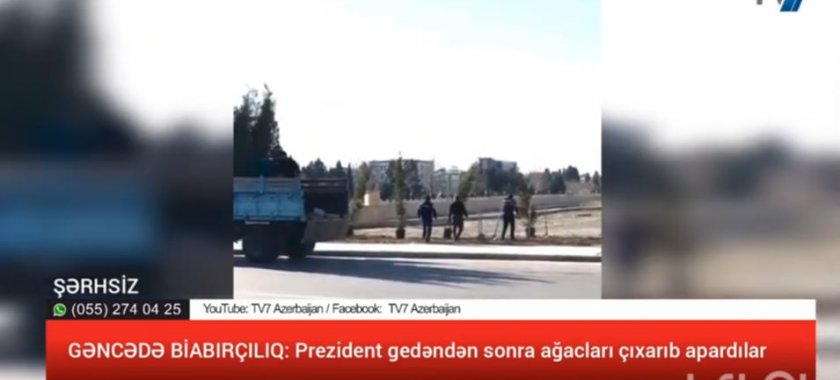 GÜNDƏM / HADİSƏ / GƏNCƏDƏ BİABIRÇILIQ: Prezident gedəndən sonra ağacları çıxarıb apardılar - VİDEO