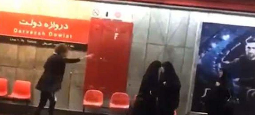 İranda "əxlaq polisi" funksiyasını yerinə yetirən "Gəşte Erşad"ın 3 qadın əməkdaşı stansiyanın platformasında duraraq qatarı gözləyən qadına yaxınlaşıblar. Üç qadın polis bu xanımdan nə üçün başında hicab olmadığını soruşublar. Daha sonra isə qadına qaydaları pozduğu deyilib.