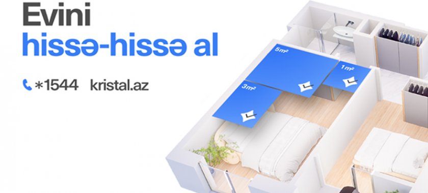 "Kristal" daşınmaz əmlak bazarında innovativ və vətəndaşyönümlü bir satış modelinə start verir: "Evini hissə-hissə al". Bu model mənzil almaq istəyən, amma kredit və faiz yükü istəməyən hər kəs üçün nəzərdə tutulub.