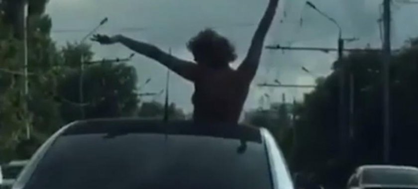 Görüntülərdə maşının yuxarısındakı pəncərədən qadının çılpaq halda çıxıb, sürücüləri çaşdırması əks olunub.