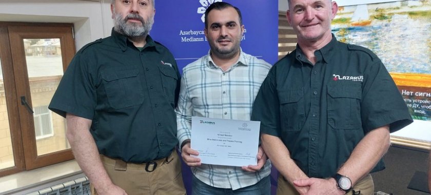 KİV nümayəndələrinə təhlükəli bölgələrdə fəaliyyət, mina partlayışlarından xilas olma və ilkin tibbi yardım mövzularında təlimlər keçirilib. Təlimin sonunda proqramı uğurla başa vuran jurnalistlər sertifikatla təltif olunublar.