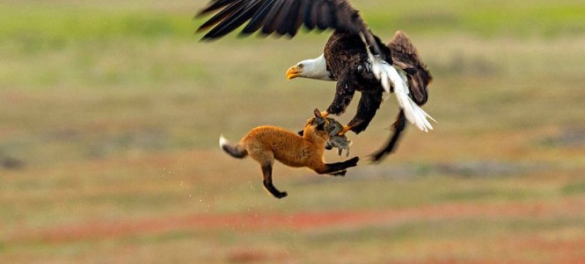 Videodan da göründüyü kimi, balaca bir tülkü təzəcə bir dovşan ovlayıb. Lakin bir azdan o özü Amerikanın simvolu sayılan ağbaş qartalın hücumuna məruz qalır. Qartal onun ovladığı dovşanı ələ keçirmək üçün aşağı şığıyır. Tülkü ovunu əldən verməməyə çalışır. Lakin qartalın onu da aparacağını gördükdən sonra təxminən 7-8 saniyəlik mübarizənin ardından bu fikrindən vaz keçib yerə düşür.
