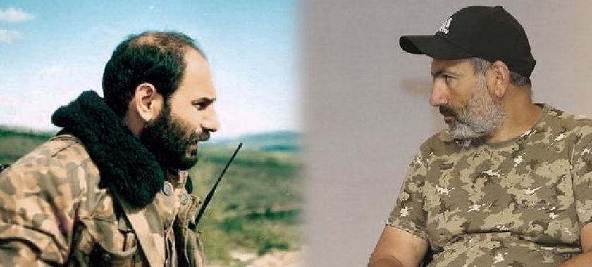 Və birdən biz parlamentin divarları qarşısında tam fərqli Paşinyanı görürük: səliqəsiz saqqal, dağınıq saçlı, hərbi paltarda və sağ əli sarıqlı formada. Bu obraz erməni xalqına Melkonyanı xatırladırdı”.