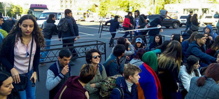 Baqramyan prospektini taksi şoferləri də qismən bağlayıblar. Sürücülərdən biri jurnalistlərə bildirib ki, aksiya iştirakçıları lisenziyalaşdırma prosesinin qaydaya salınmasını tələb edirlər.