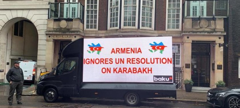 Üzərində "Qarabağ Azərbaycandır”, "Ermənistan Qarabağ qətnaməsini qəbul etmir” yazıları olan avtomobil London küçələrində hərəkət edib.