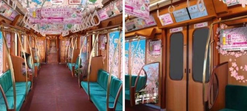 Pəncərələrə çiçəklənən sakura təsvirləri yapışdırılıb. Bu, sərnişinlərdə onların içində olduğu qatarın yeraltı tunel üzrə yox, mənzərəli albalı ağaclığı üzrə hərəkət etməsi təəssüratı yaradır.