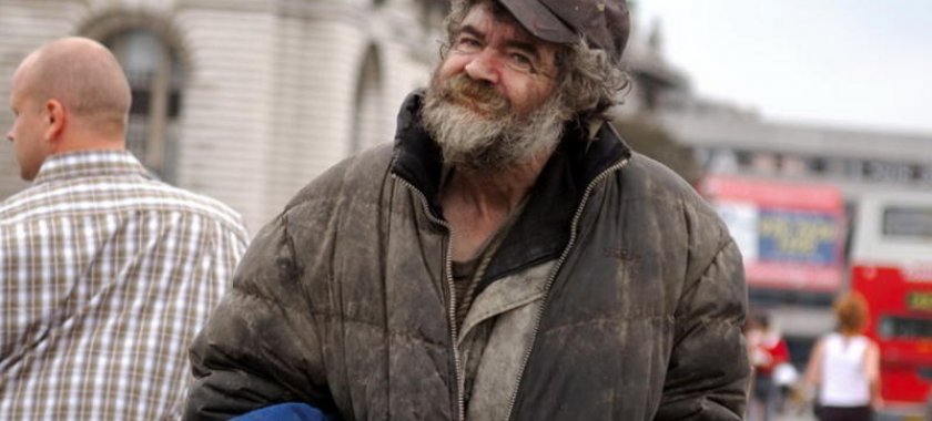 İki bomj binalardan birinin qarşısında yoldan keçənlərin gözləri qarşısında sekslə məşğul olublar.
