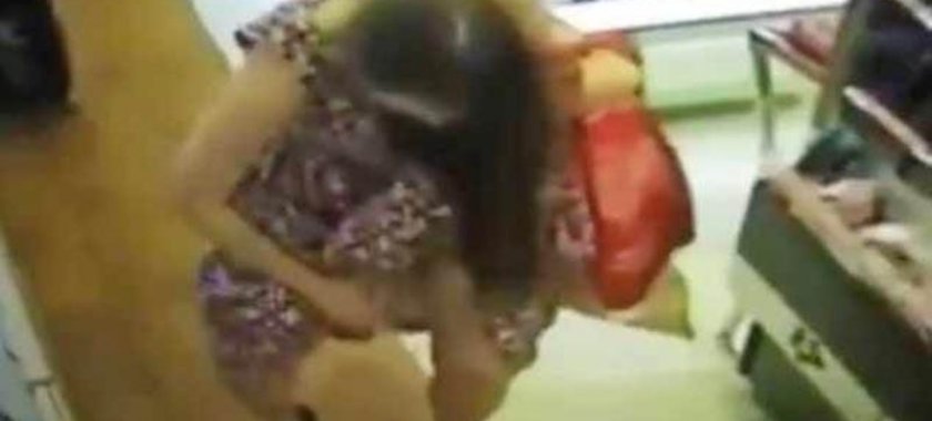 Ətirlərə baxan qadın onlardan birini götürüb və üzərinə sıxmağa başlayıb. Bununla da yetinməyib, yubkasını qaldıraraq alt paltarına ətir vurub./publika