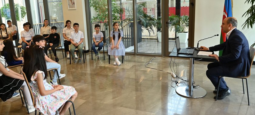 Emin Əmrullayev şagirdlərə öz tövsiyələrini verib, onların suallarını cavablandırıb.