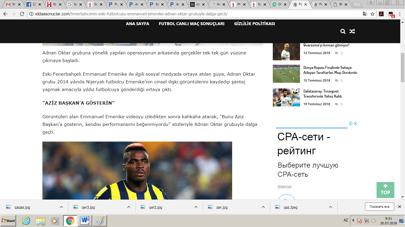 İcmal.Az xəbər verir ki, faktla bağlı sosial medialarda paylaşımlar edilib. Məlumata görə, 2014-cü ildə Adnan Oktar ulduz futbolçudan pul almaq məqsədilə onun intim görüntülərini çəkib, daha sonra isə şantaj etməyə başlayıb. O, bu görüntüləri futbolçuya göndərdikdən sonra aldığı cavabla 168 tərəfdaşını itirib.