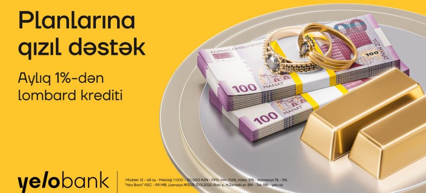Zinət əşyaların sadəcə sandıqda qalmasın, planlarını gerçəkləşdirmək üçün real vəsaitə çevrilsin! "Yelo Bank" qızıl təminatlı kredit məhsulunu yenilənmiş və daha cəlbedici şərtlərlə təqdim edir. İndi müştərilər zinət əşyalarını banka təqdim edərək, aylıq cəmi 1%-dən başlayan şərtlərlə nağd kredit əldə edə bilərlər.