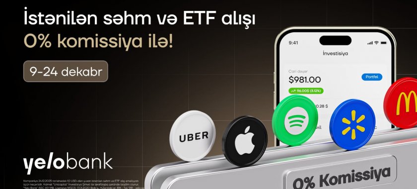 Yelo Bank investisiya imkanlarını daha əlçatan etmək üçün sevilən kampaniyasını geri qaytarır. 9–24 dekabr tarixləri arasında Yelo Invest platformasında "Komissiyasız alış günləri” keçirilir. Bu müddətdə həm yeni başlayan, həm də təcrübəli investorlar 10 ABŞ dollarından yuxarı istənilən səhm və ETF-i komissiya ödənişi olmadan ala biləcəklər.